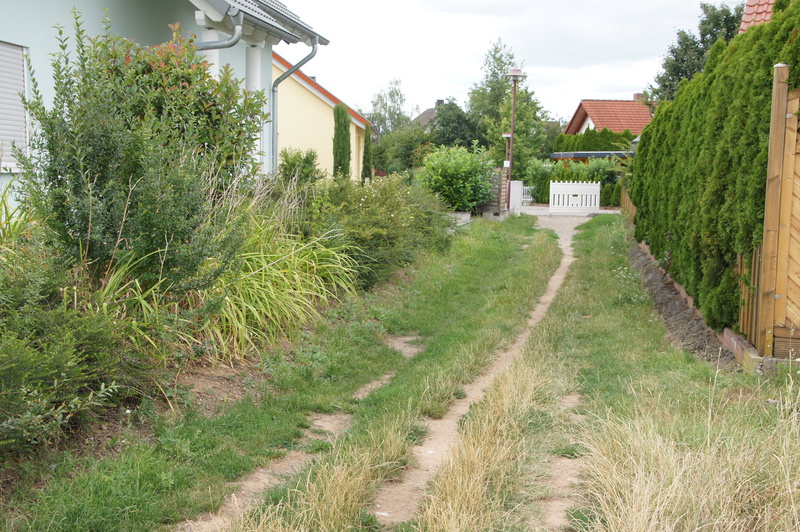 Dann konnten wir diesen 4m breiten Weg zu unserem Grundstück dazu kaufen.