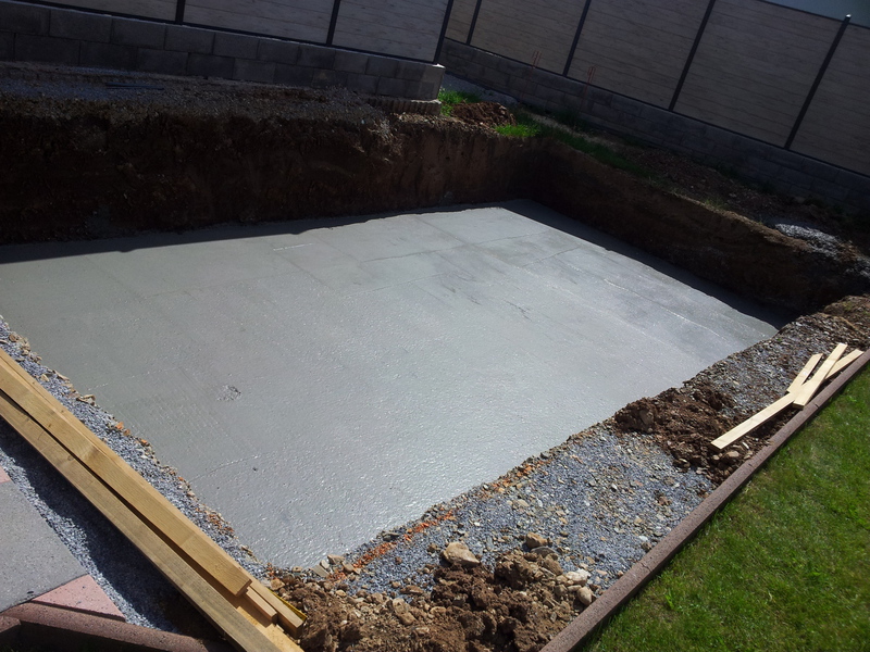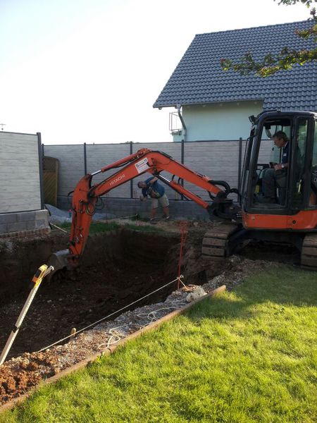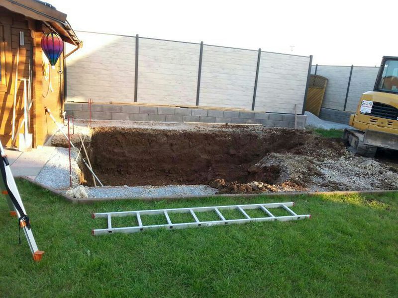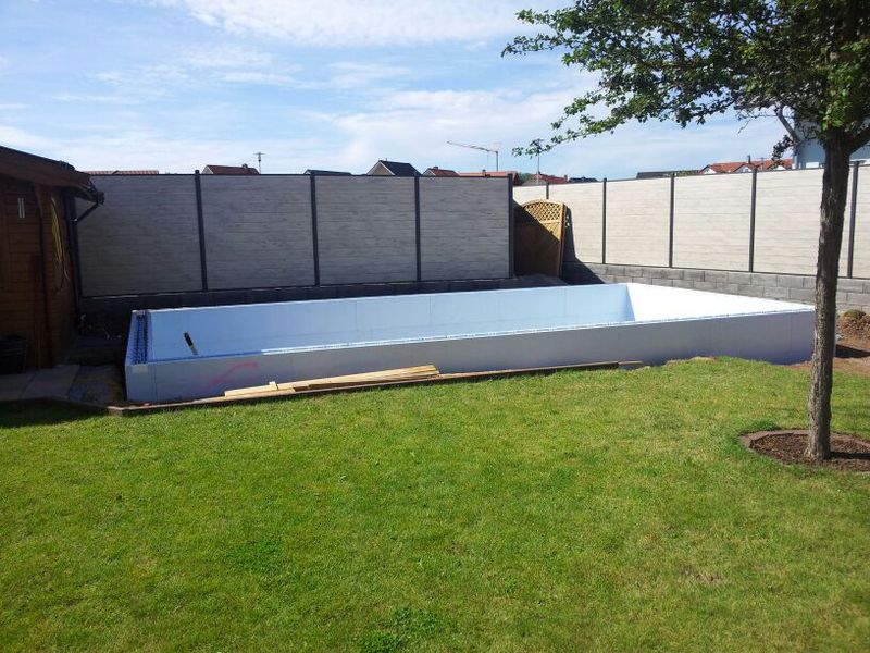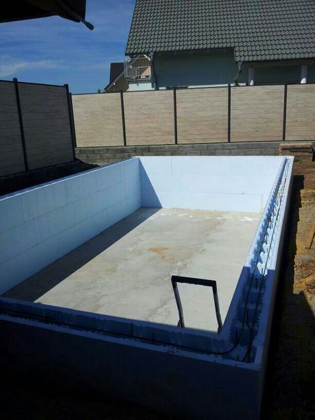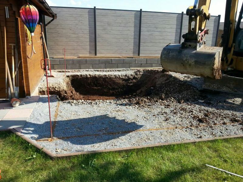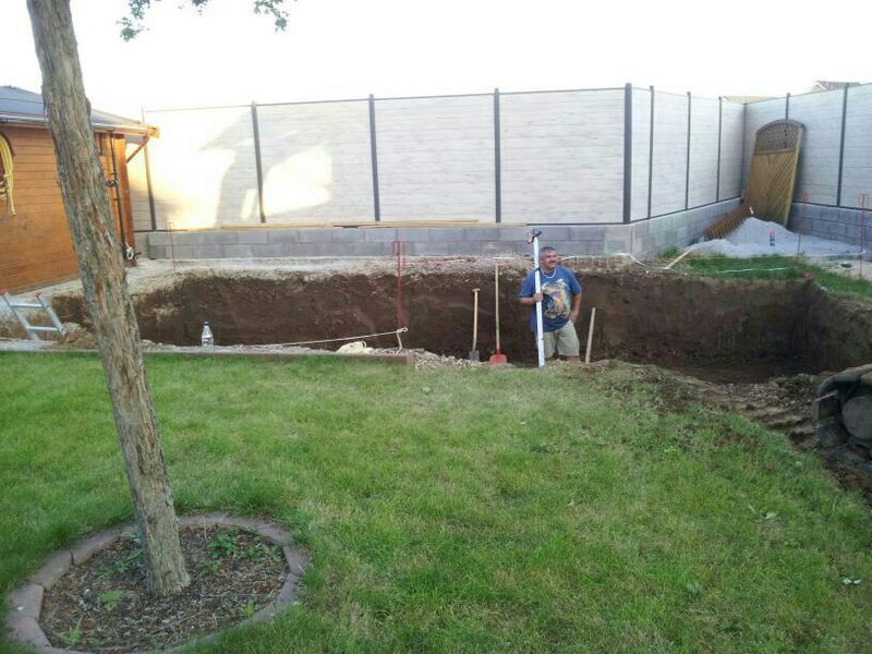 Bodenplatte und Wände stellen, Folie rein und Wasser marsch.